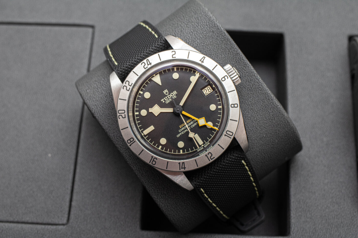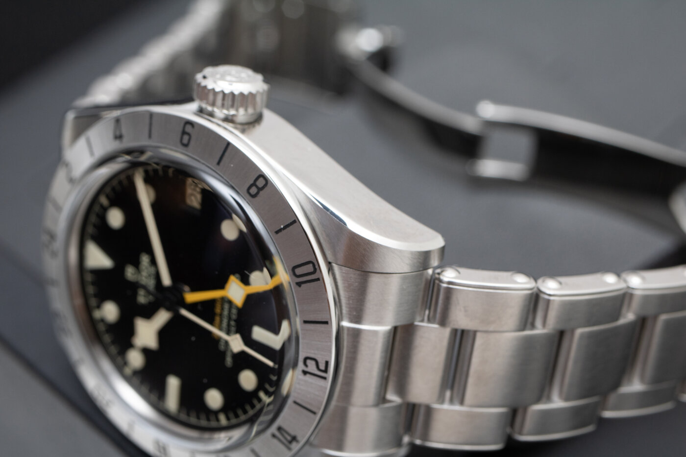 Formájában Black Bay a tok, ami régebbi Rolex sziluettekre hajaz. Itt még megmaradt az elegáns letörés ami tokfültől tokfülig fut, összekapcsolva a szál-húzott és polírozott felületeket. Szemből teljesen szatén a tok, míg oldalt egészében polírozott. A toolwatch-ok jellegzetessége, hogy csökkentik a polírozott felületek számát, ezzel elkerülve a fényvisszaverődést. Gondoljunk csak bele, milyen kényelmetlen amikor professzionálisan utazunk a GMT óránkkal és a tokon megcsillan a Sils tóról visszaverődő napfény, ami aztán elvakít minket.