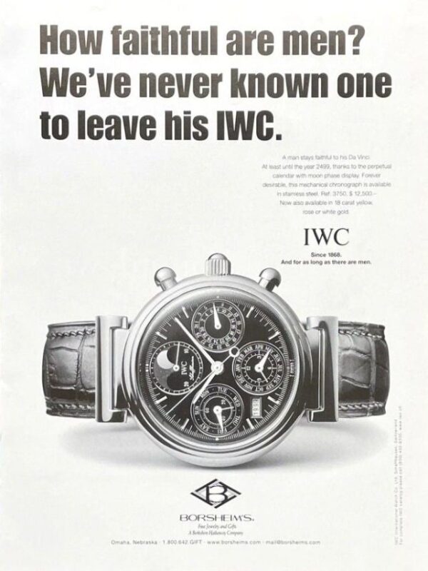 Ezek a szlogenek ugyanakkor nemcsak a férfiasságot, hanem az IWC márka időtállóságát, technikai kiválóságát hangsúlyozták, miközben gyakran játszottak a nemi szerepekkel és a társadalmi sztereotípiákkal. A headline-ok egyszerre voltak szórakoztatóak és provokatívak, ezért nem meglepő, hogy egyszerre váltottak ki elismerést a szakmában és kritikát a női szerepek ábrázolása miatt. Az IWC menedzsmentje ezért 2005-ben a kreatív koncepció és az ügynökségváltás mellett döntött.