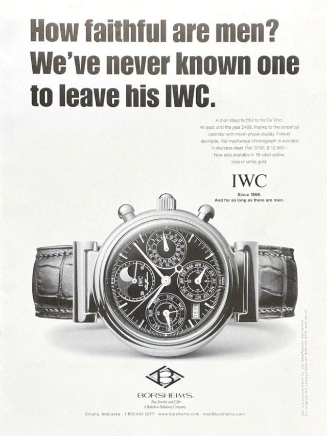 - Men are faithful. Especially to their IWC. (A férfiak hűségesek. Különösen az IWC-jükhöz).