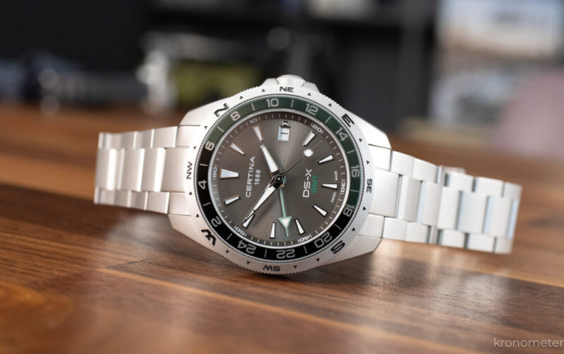 A túrázókhoz, kalandorokhoz pedig 5 ponton kapcsolódhat a típus: DS ütésbiztosítással, a 200 méteres vízállósággal, a matt finiseléssel, a GMT lünettával és az iránytűvel. Az ütésbiztosítás és a vízállóság egyértelmű előnyök, a GMT lünetta a több időzóna megjelenítésében hasznos, kettő időzónát könnyedén leolvashatunk róla, hármat akkor, ha minimális számításra is hajlandóak vagyunk.