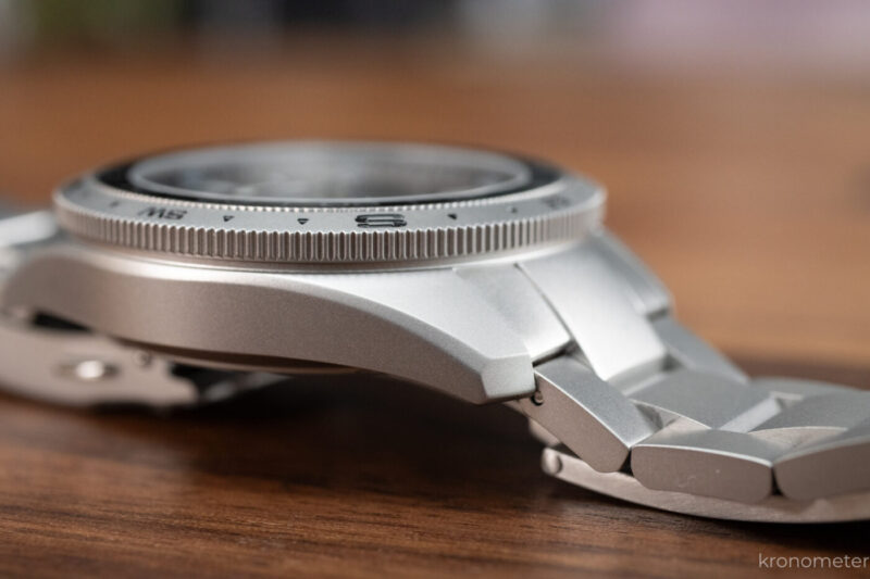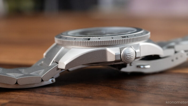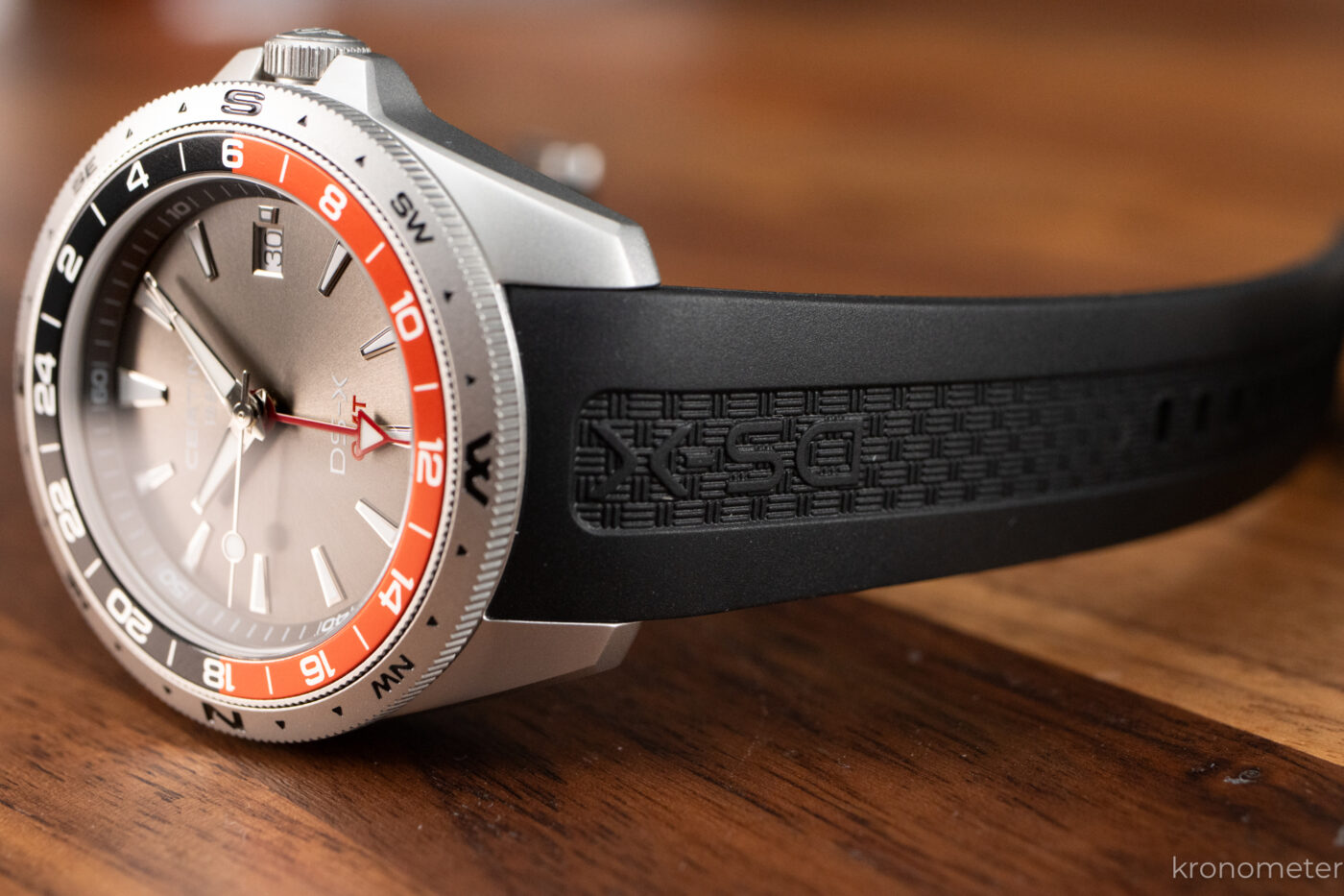 A 41,2 milliméter tok a DS ütésbiztosítás minden előnye mellett 200 méterig vízálló, menetes a koronazár természetesen, és 20 milliméteres a tokfül távolság, tehát szinte korlátlan módon variálhatjuk az utólagos szíjakat – nem mintha a gyári nem lenne elég jó. A gumiszíj tökéletesen passzol a tok ívéhez, az acél pedig hozza a kategóriában elvárható kötelezőt.