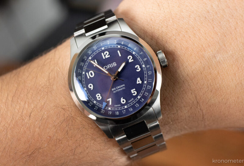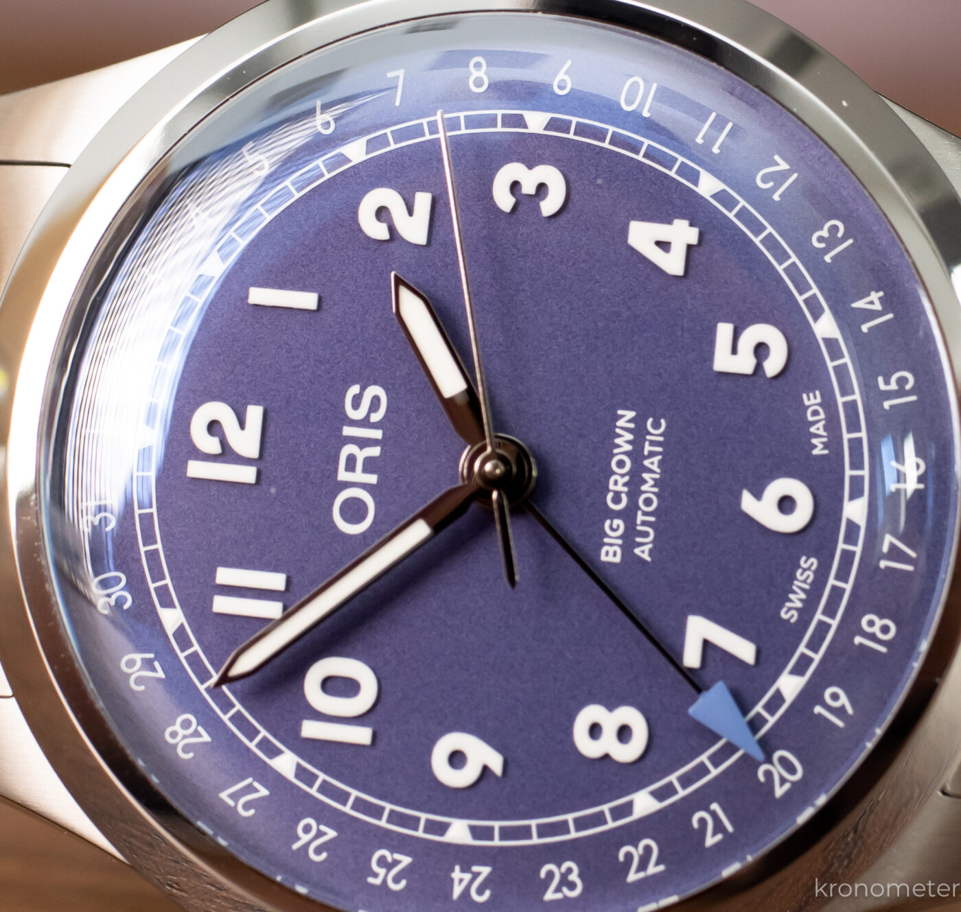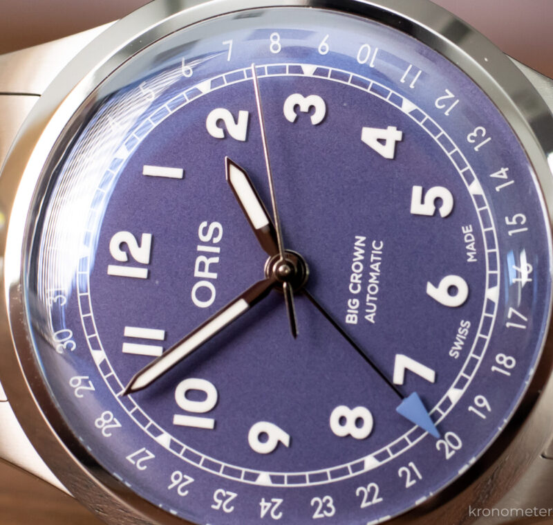 A Big Crown, a „field watch” stílus úttörője a márkán belül. Tizedmilliméteri pontossággal kimért mutatók, látványos, nagy arab számok, és hatalmas mutatós dátum – avagy pointer date ahogy a szakma fogalmaz.