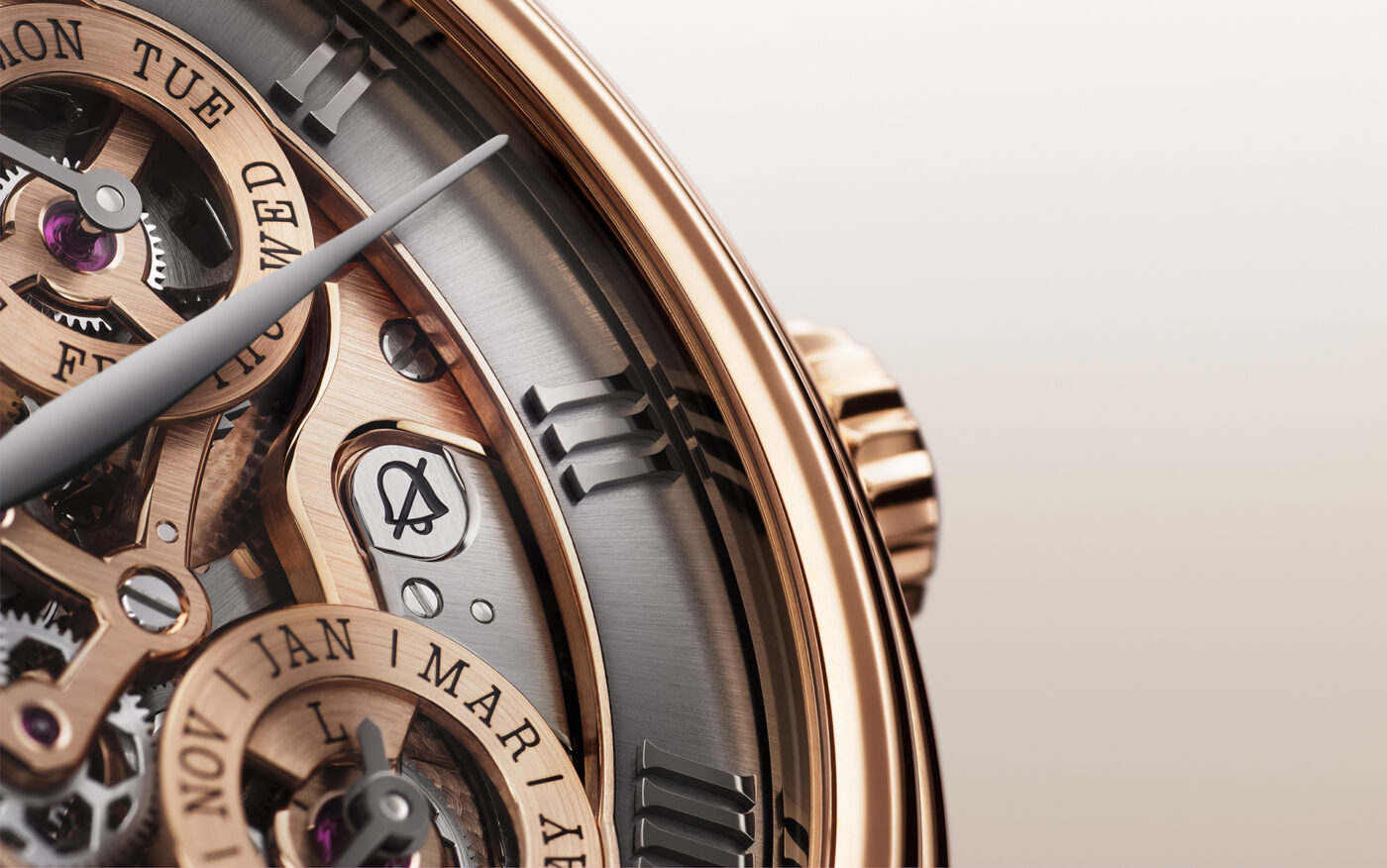 Szinte minden tradicionális díszítési eljárást megtalálunk az órán, a perlázstól, a genfi csíkozáson át, a kézzel polírozott letörések belső szögeiig, melyekből összesen 135 darab van az arany hidakon.
