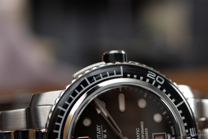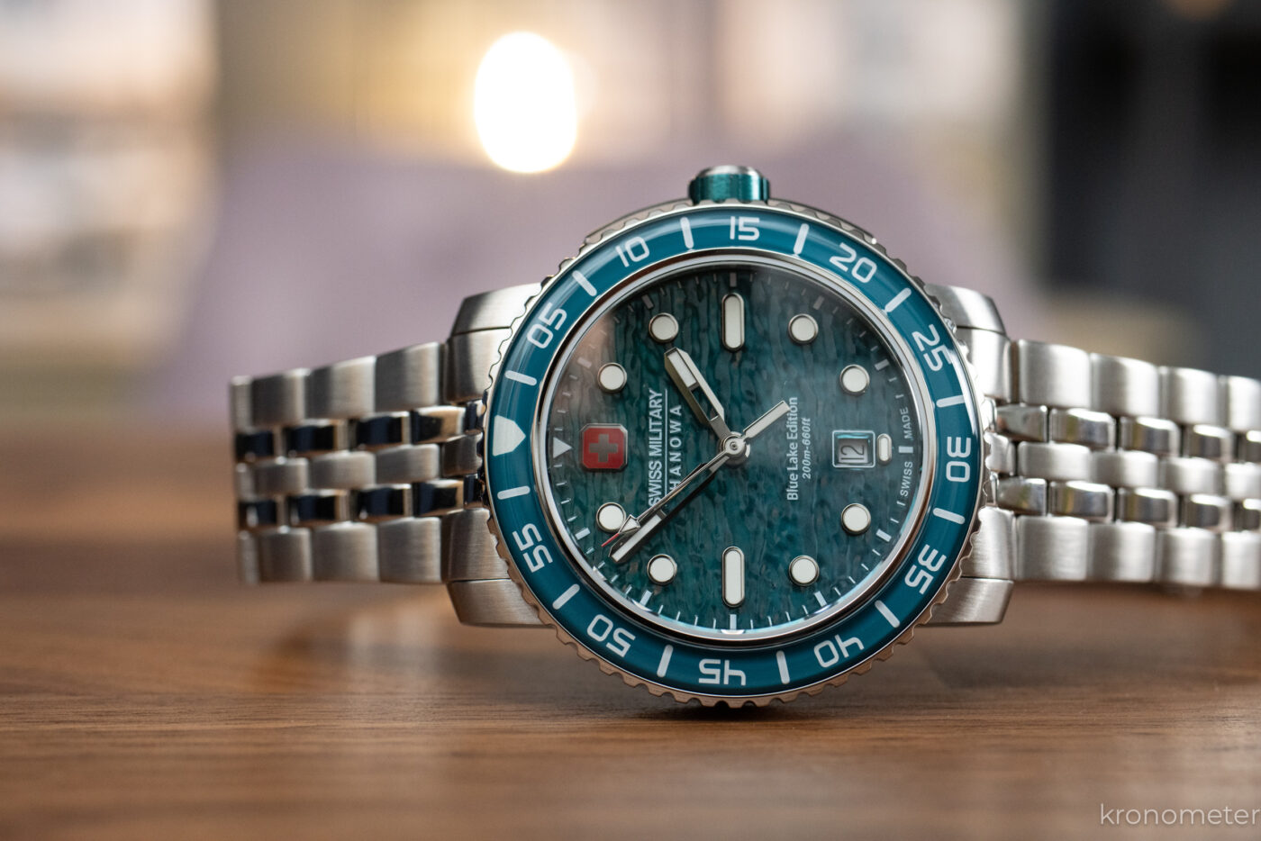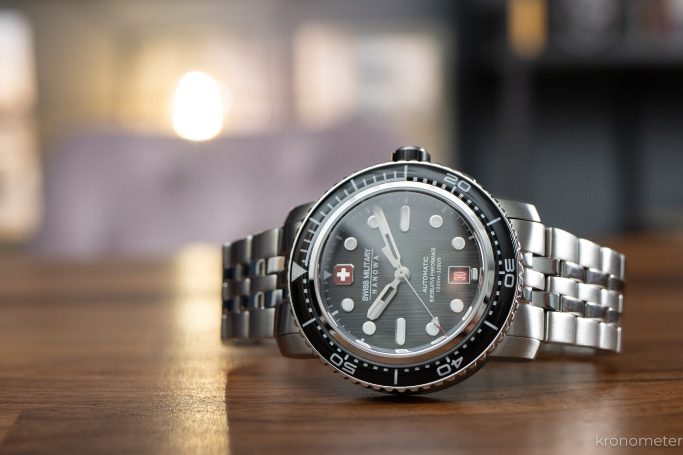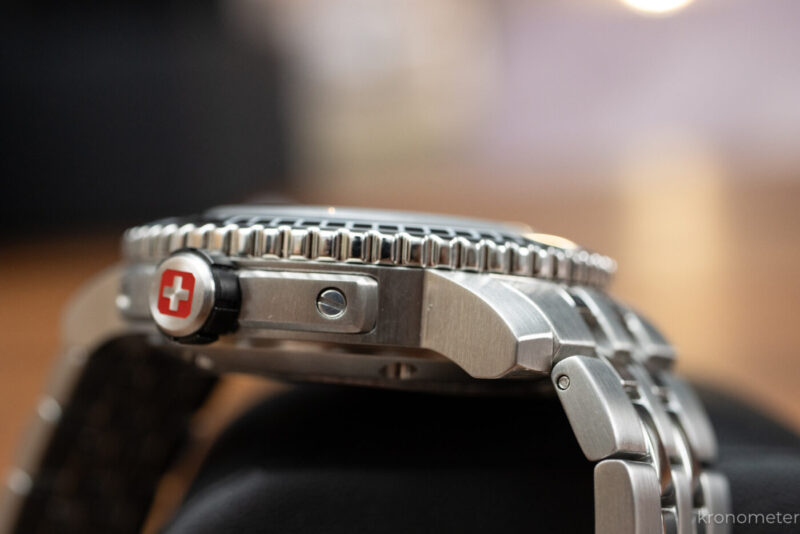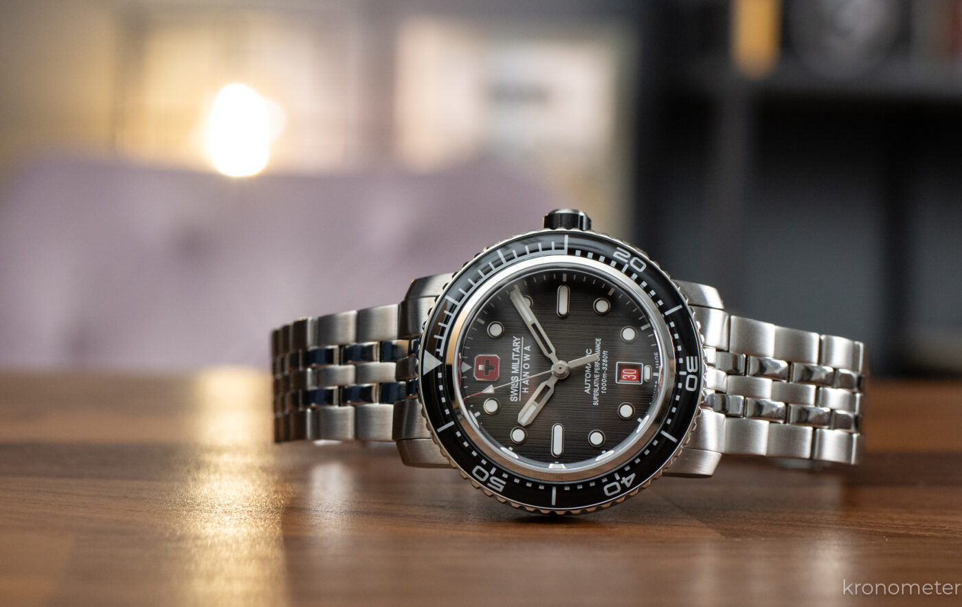 A Swiss Military Hanowa katalógusában van pár alapdarab, mint a Maitre Plongeur. Egy harsány, egy egységnyi búváróra, ami jól ismert dizájnjegyeket használ, mint a lapátmutatók vagy az üveggel borított, forgatható búvárlünetta. 44,5 milliméter átmérőjű és 14,8 milliméter vastag az automata változat, míg az olcsóbb kvarc valamivel karcsúbb, 44 milliméter átmérőjű és 12 milliméter vastag, de mindkettő ugyanarra az alapra épít. Szögletes, hosszúkás tokfüleik csuklón még nagyobb órává teszik ezeket, így igazán maszkulin darab mindkettő.