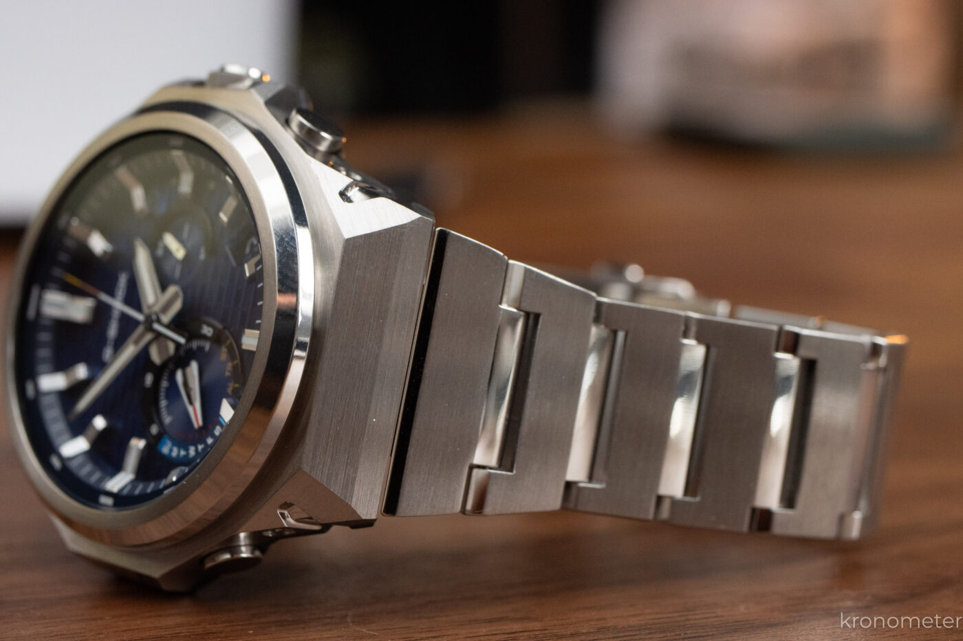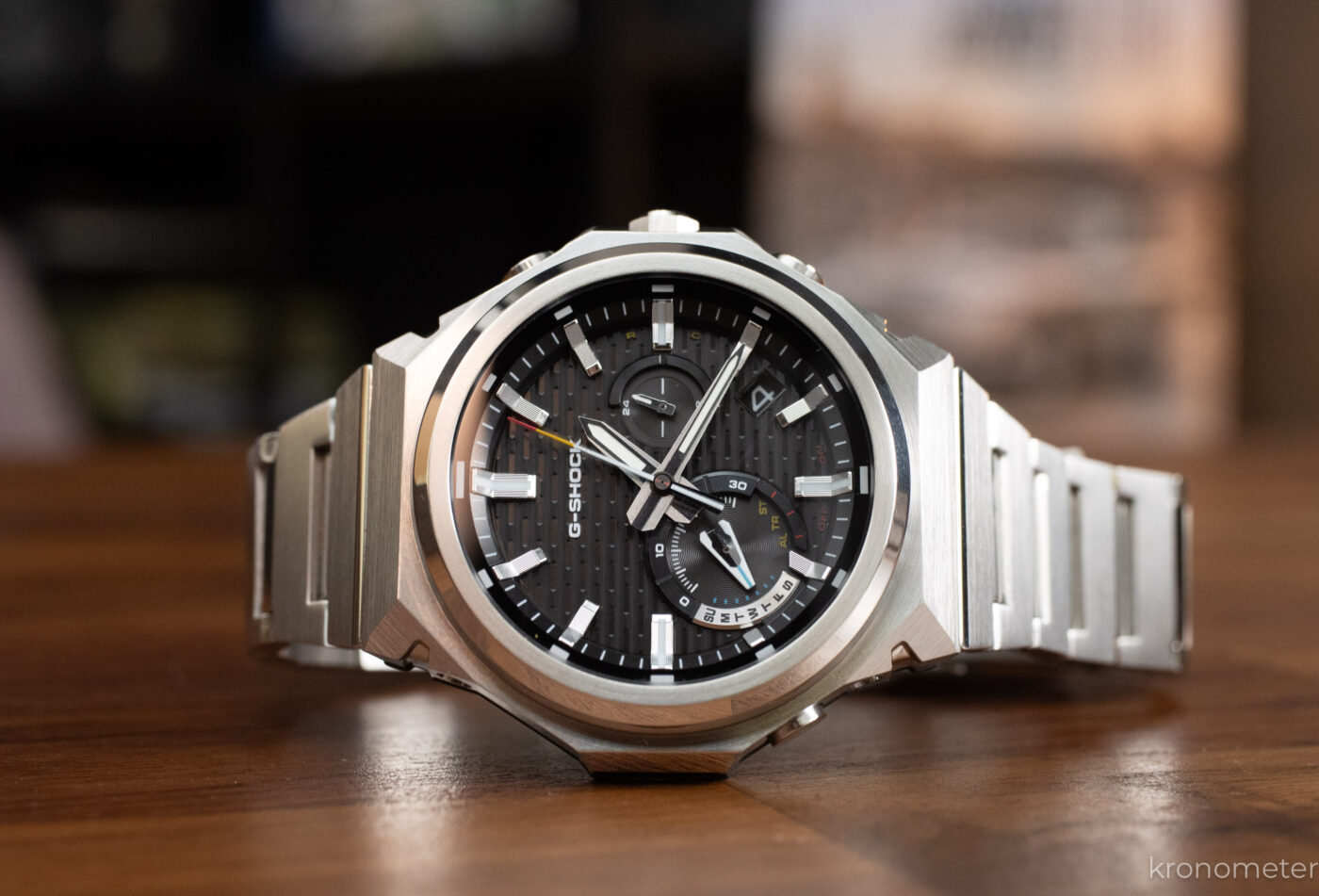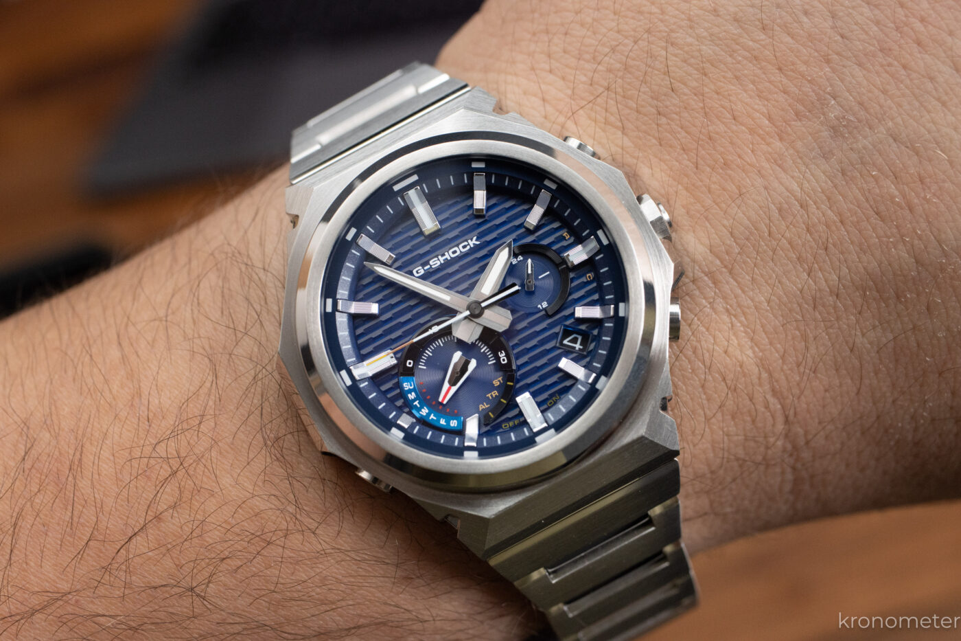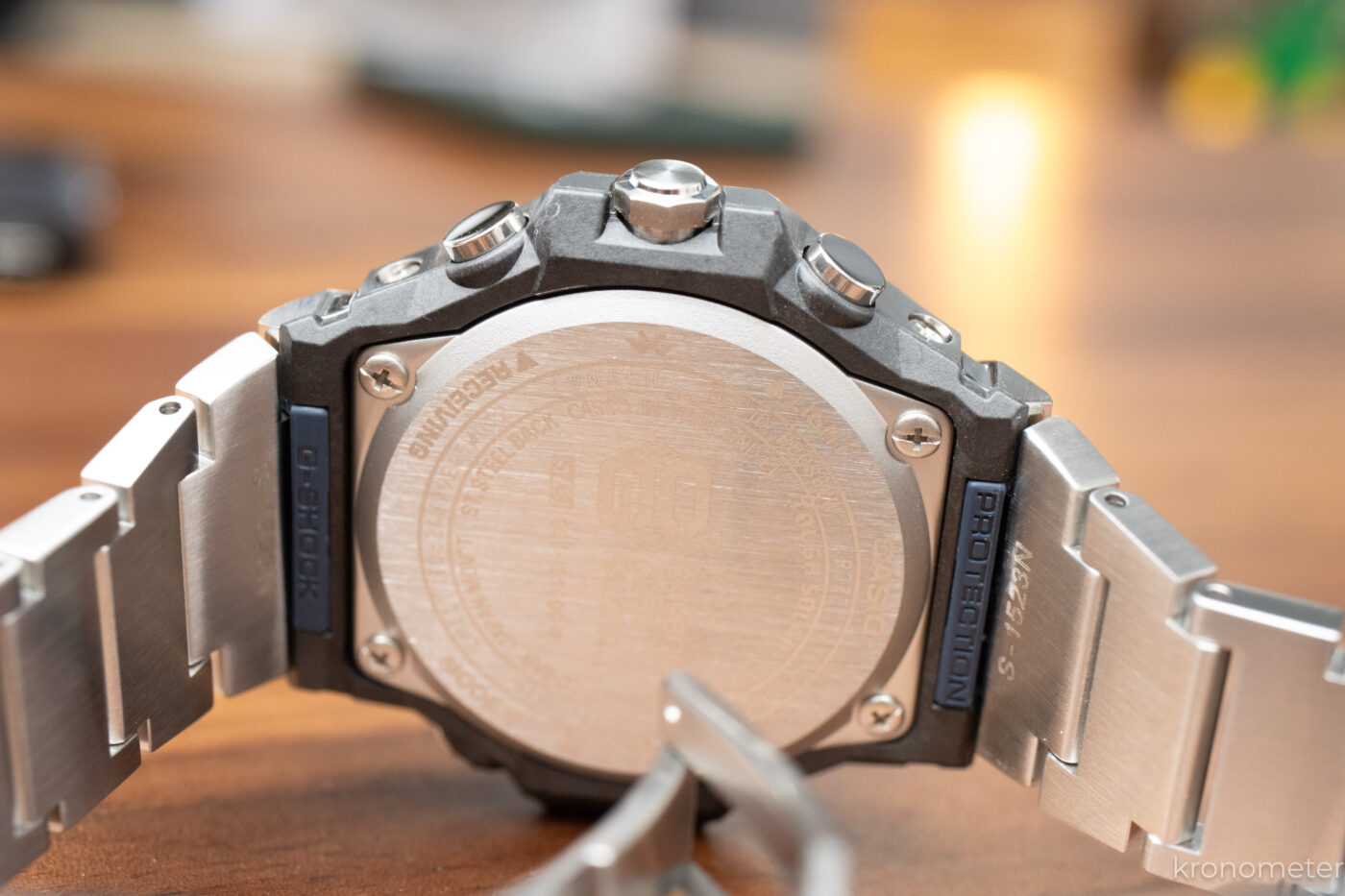 Több pontján is éles szögekben futnak össze a nagyrészt szálcsiszolt felület síkjai, jellegzetes, japán órás összképet hozva. Mint a legtöbb acél G-Shock, úgy ez is szénszálas kompozit magra épít, amit körülvesz az acél külső, így megmarad a G-Shock órák híres ütésállósága, amit ezúttal uretán ütéselnyelő elemekkel is megerősítettek. Ennek ellenére az óra profilja kifejezetten karcsú, ami nem minden korábbi G-Steel óráról volt elmondható. Kézzel tapintható a fejlődés.