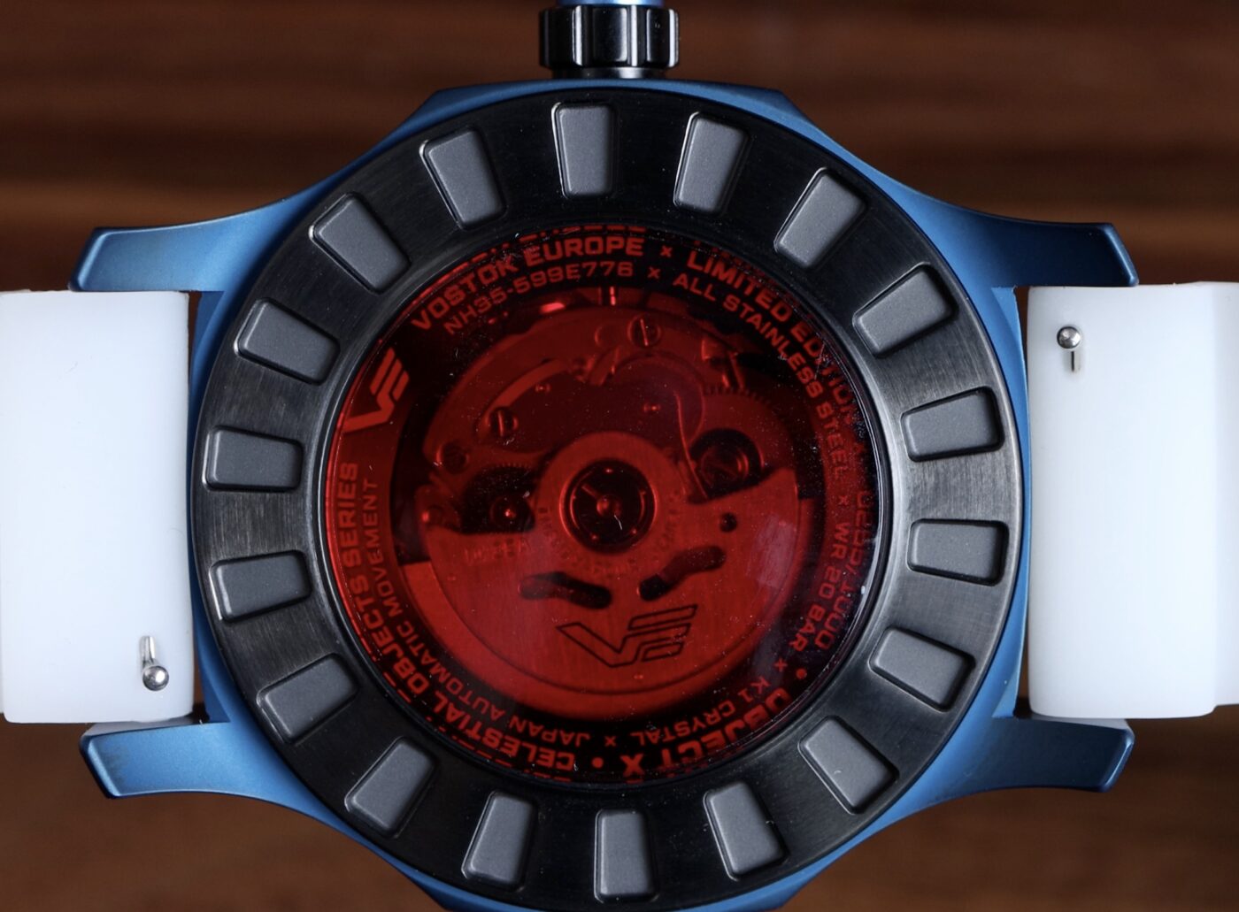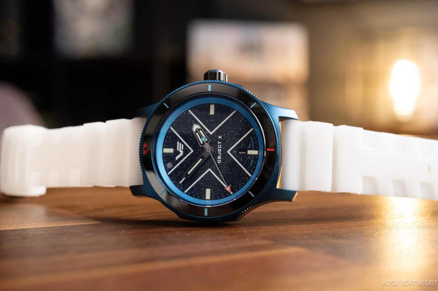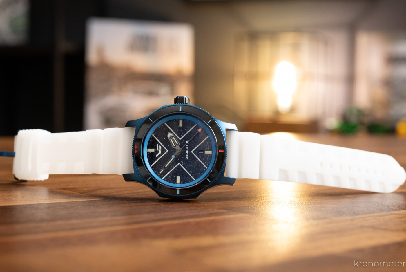 Az ezer darabra limitált Object X egy a megszokottól eltérő, lapos dobozban érkezik, külön a két szíj, külön az óra. Az egyik szíj piros, kellemesen puha, de tartja az órát, a megszokott Vostok Europe szíj, a másik az igazán érdekes, a fluoreszcens fehér szíj. Ha nem is süti ki a szemed, de nagyon látványosan világít. Bulikba, vagy nyárra különösen jó választás, valódi „jókedvrederítős” darab.