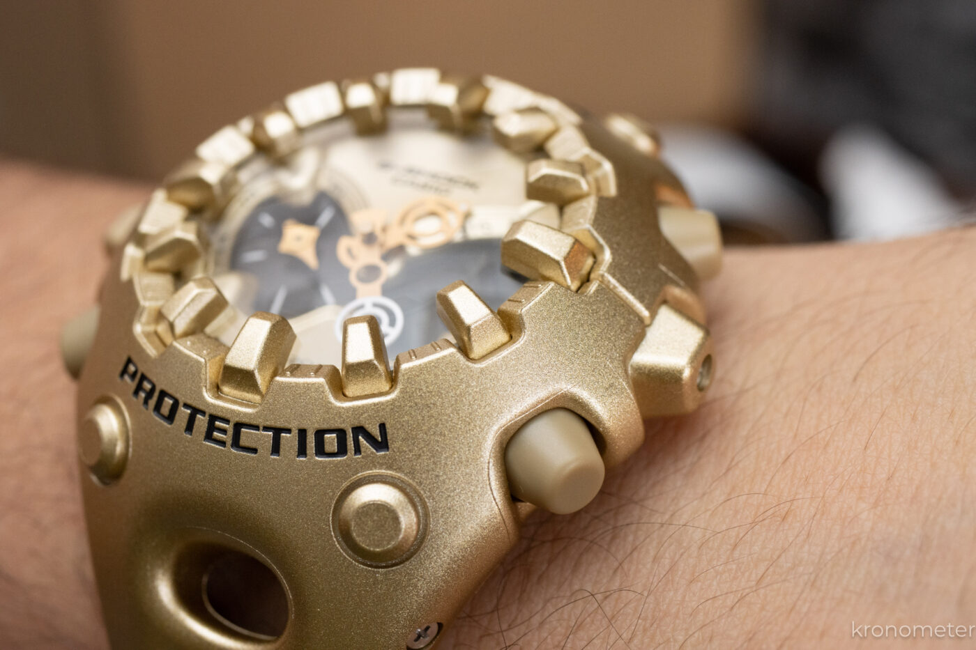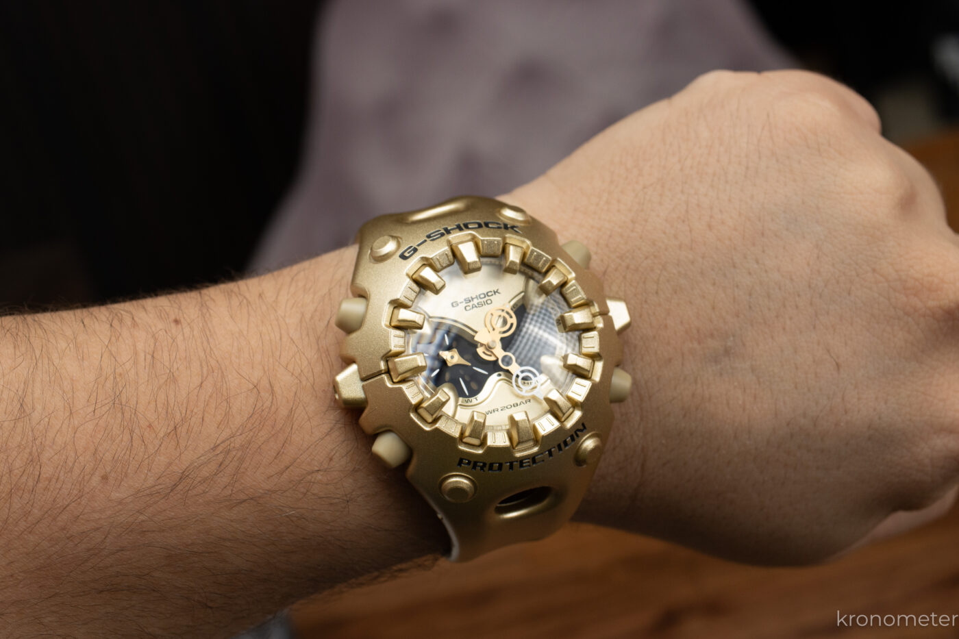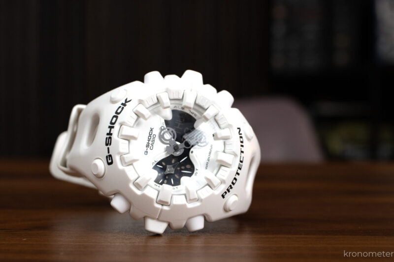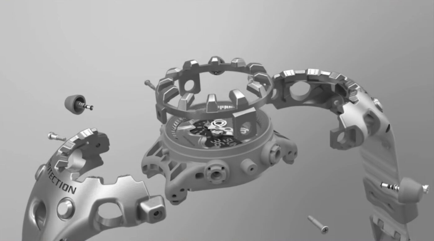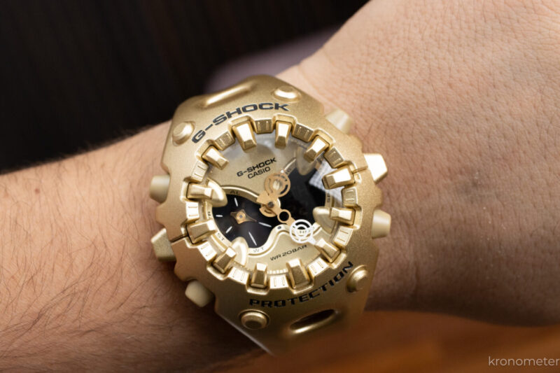 A GA-V01 formáját gyakorlatilag egy energiaelnyelő bölcsőnek tekinthetjük. Itt tényleg funkcionális a forma. A kiinduló pont a G-Shock atyjának, Kikuo Ibének prototípusa volt, ami egy ütéselnyelő labda volt. Amit aztán a tervező, Tomohiro Hamaue egy életre kelő, szögletes labdává varázsolt, ami egy lábakkal is rendelkező figurává változik.