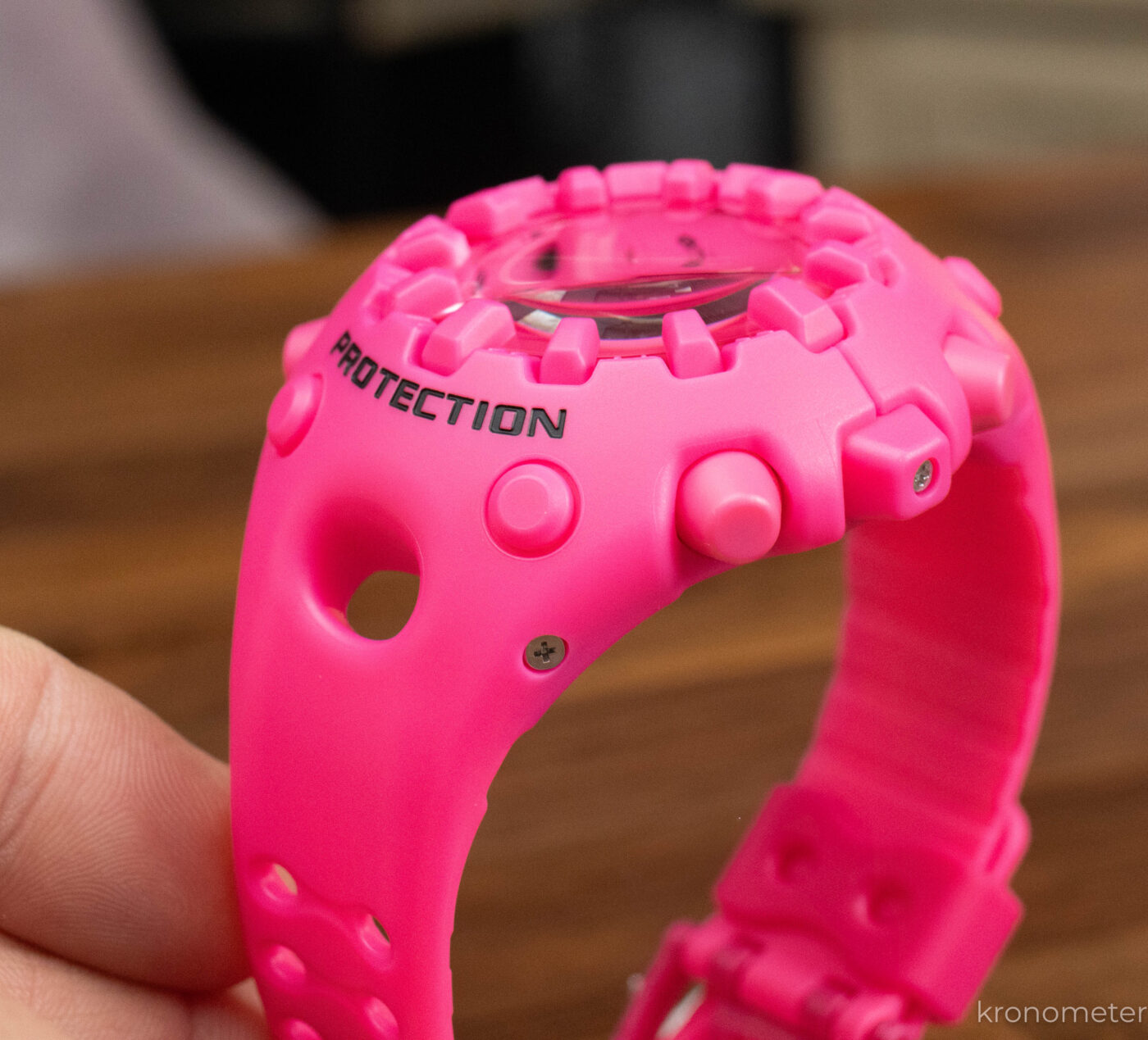Ahogyan azt sem, hogy ez egy új, modern, de aránylag olcsó óra – 60.000 forintba kerül. Ennek a leglátványosabb pontja a tok és a szíj oldalán végigfutó, gyártási eljárás során ottmaradt vékony kis sorja. Amit túl lehet élni, nem vág, csak egyszerűen nem szép.