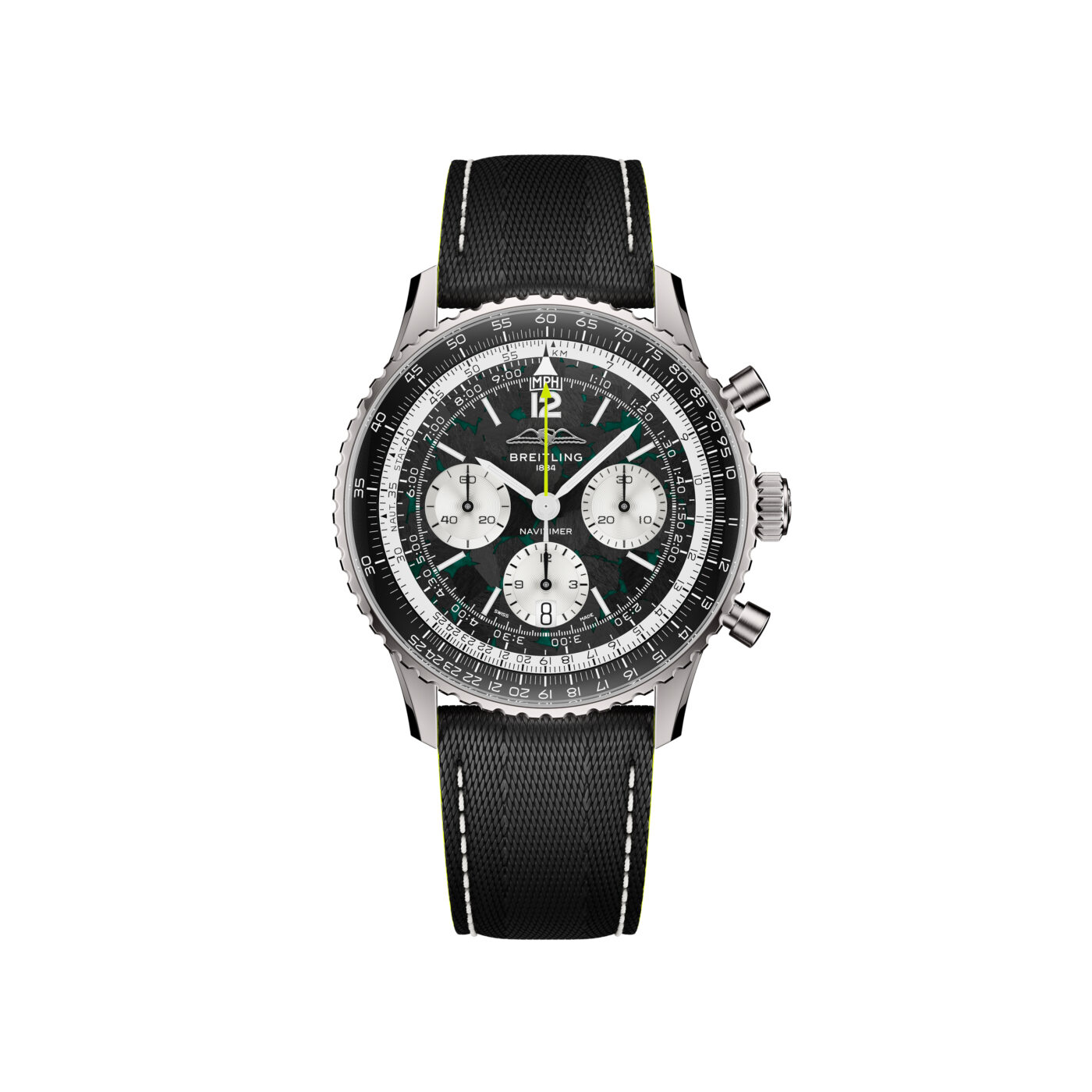 Az együttműködés első kézzelfogható eredménye a Navitimer B01 Chronograph 43 Aston Martin Aramco Formula One™ Team. A név hosszú, de a lényeg a technikai részletekben rejlik. A Navitimer alapvetően a pilóták eszköze, de a Breitling joggal hivatkozik arra, hogy az 1959-es években olyan legendás versenyzők, mint Graham Hill vagy Jim Clark is ezt viselték a pályán. Ami viszont a gyűjtők számára igazán érdekessé teszi ezt a kiadást, az az anyaghasználat: ez az első alkalom a modell történetében, hogy a Navitimer titán tokot kapott.