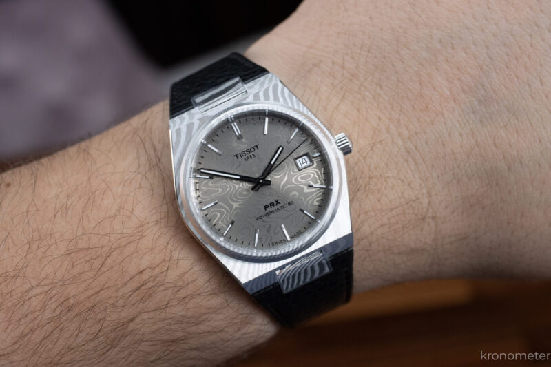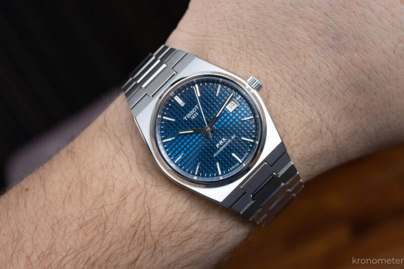 A másik versenyző a titán változat, amely végre elhozta a rajongók által követelt „arany középutat”, a 38 milliméteres méretet. Ez a méret sokak szerint a PRX legideálisabb inkarnációja: nem tűnik túlméretezett lepénynek, mint egyes csuklóformán a 40-es, de férfiasabb, mint a 35-ös. Személyes meglátásom, hogy ez a tökéletes méret a PRX-ből. Nem lóg túl, nem túl pici, és nagyon kényelmes.